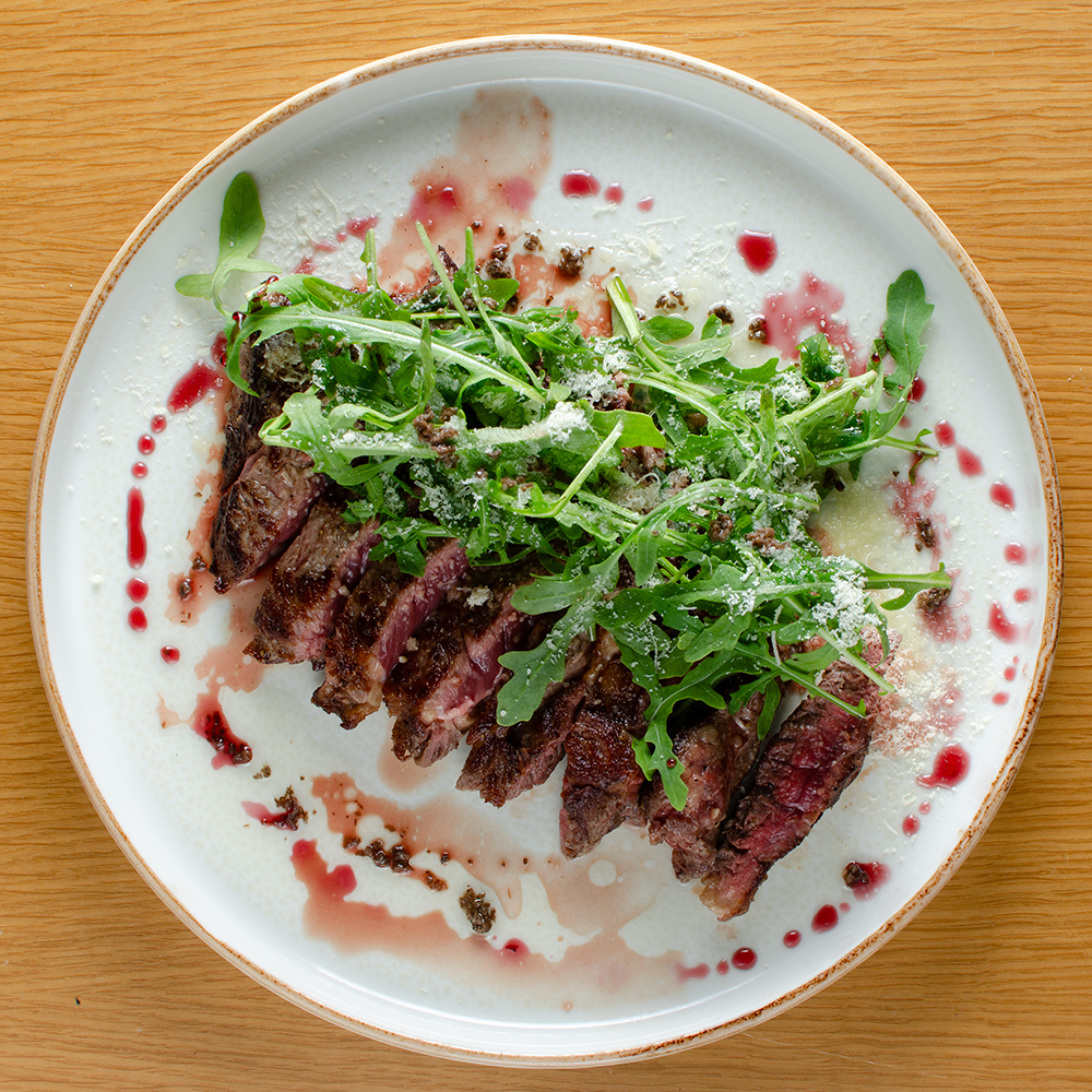 beef ribeye steak, Parmigiano Reggiano 24 months mature, arugula, butter and truffle oil