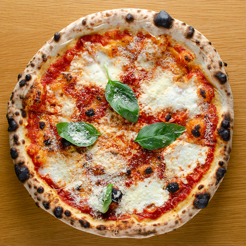 tomato sauce, buffalo mozzarella, Pecorino Romano aged 18 months, basil, olive oil