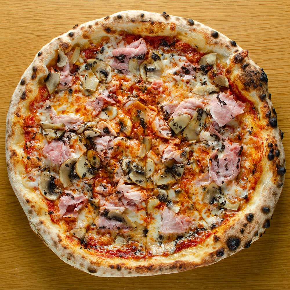tomato sauce, Mozzarella Fior di Latte, prosciutto Cotto, cherry tomatoes, truffle paste, olive oil