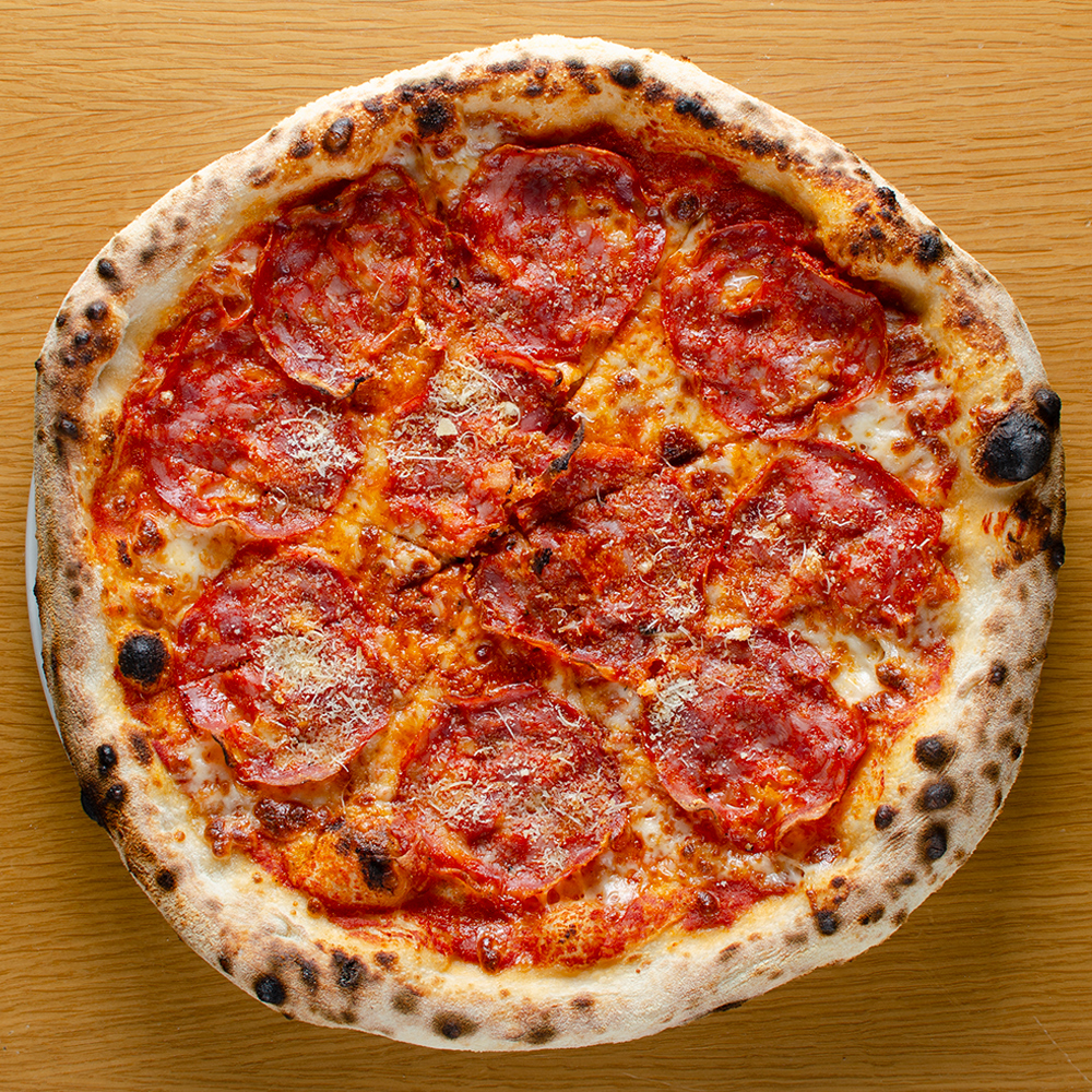 доматен сос, моцарела Фиор ди Лате, пикантен салам Вентричина, Пармиджано Реджано зряло 24 месеца, зехтин